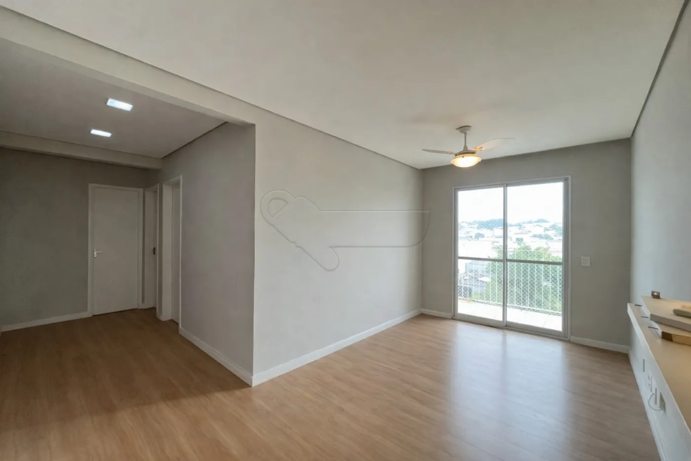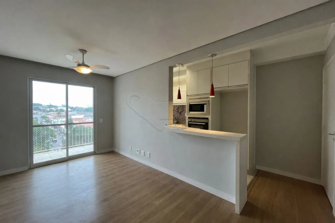 SALA PARA DOIS AMBIENTES COM VENTILADOR DE TETO E ACESSO À SACADA,