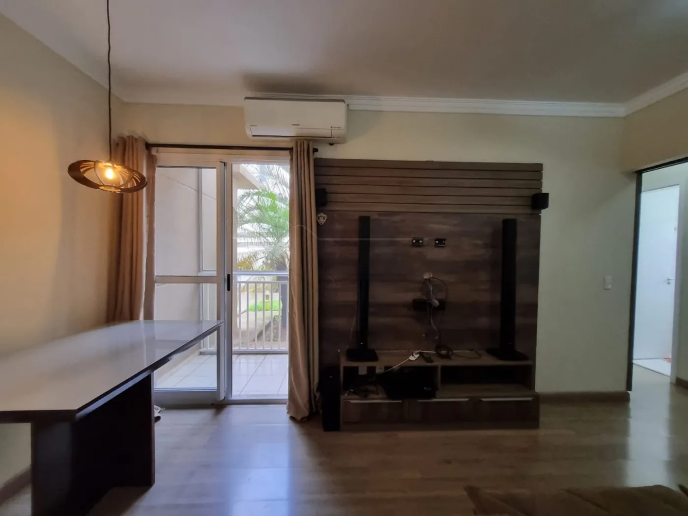 Sala aconchegante com Sofá, Mesa De Jantar, Ar Condicionado, Painel de Tv