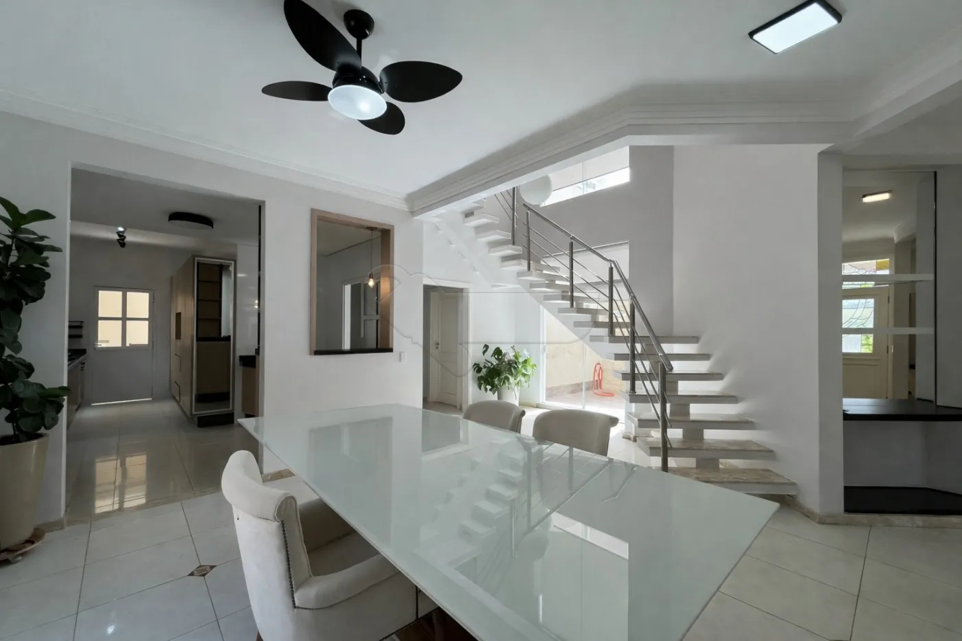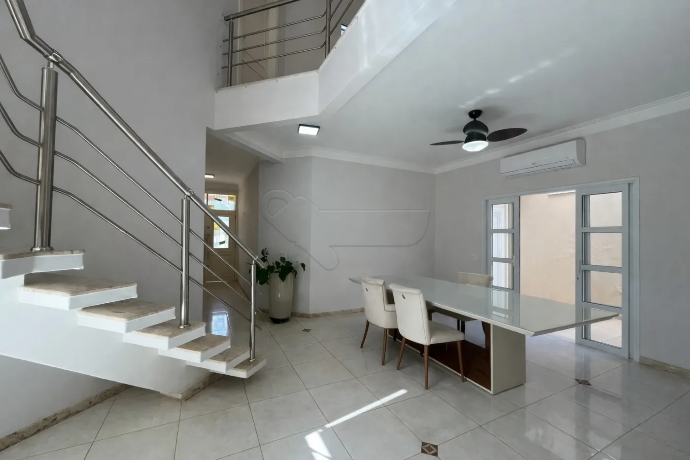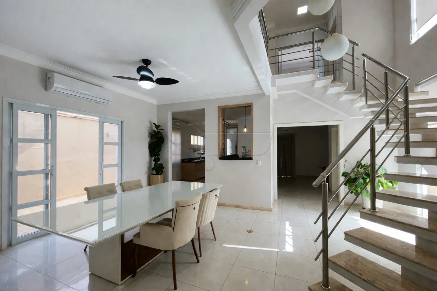 Sala de jantar com ar-condicionado e ventilador de teto