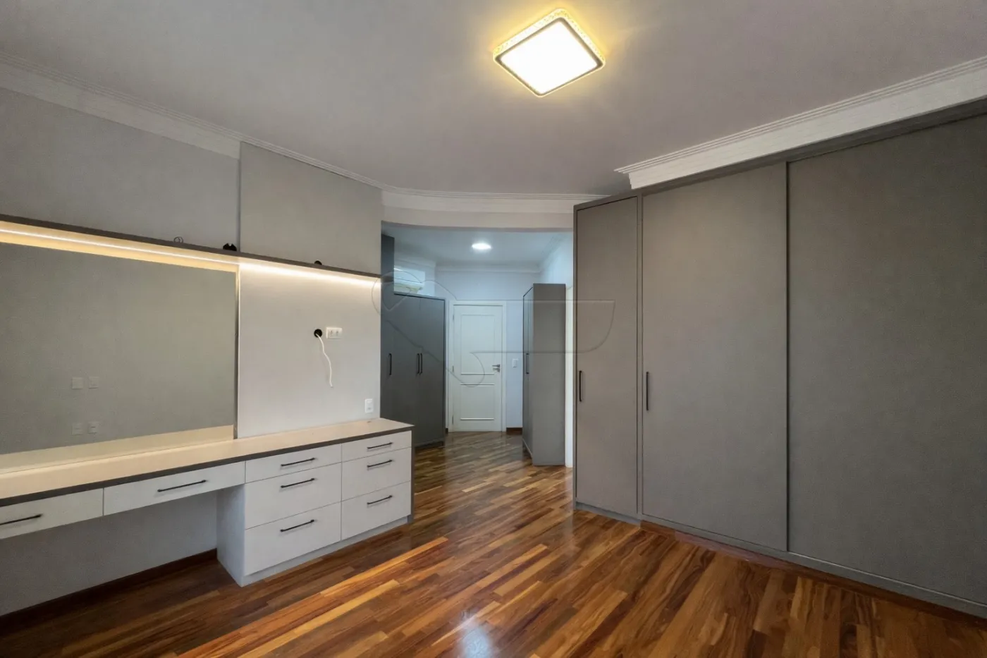 03 suítes com armários planejados e ar-condicionado, sendo 01 suíte master com closet e hidromassagem