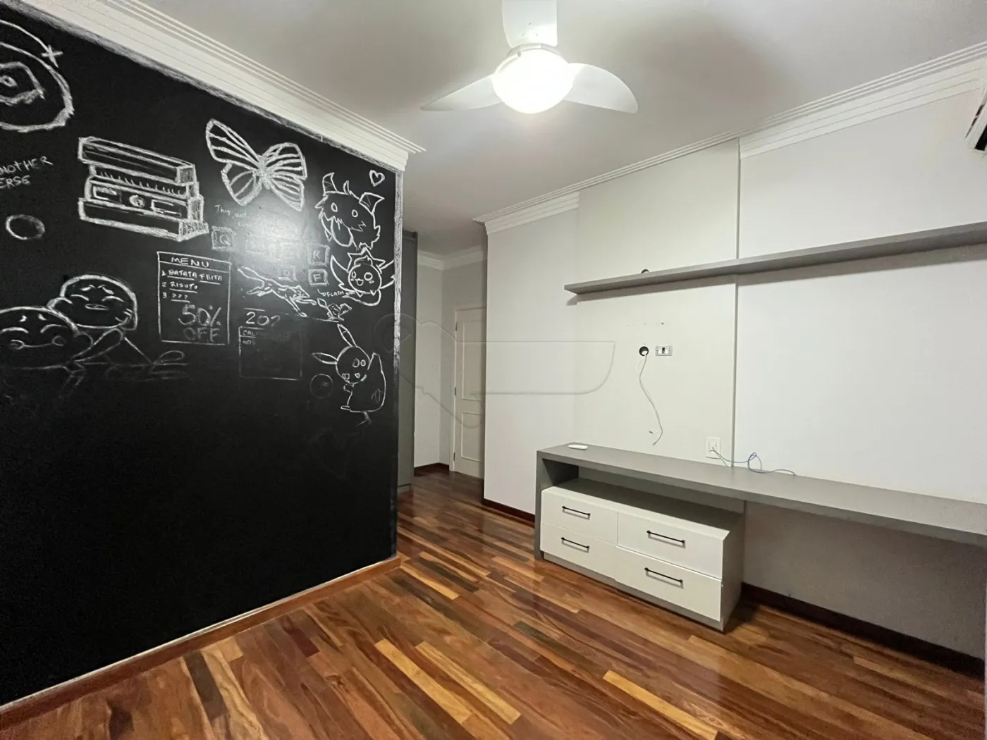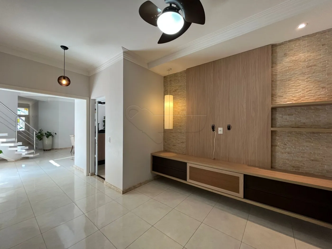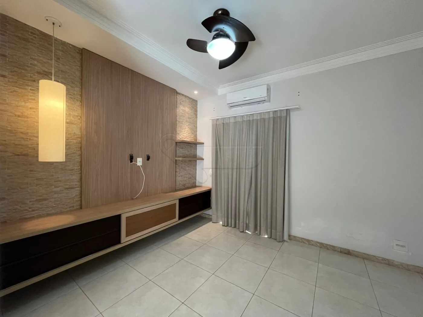 Sala de TV com ar-condicionado e ventilador de teto