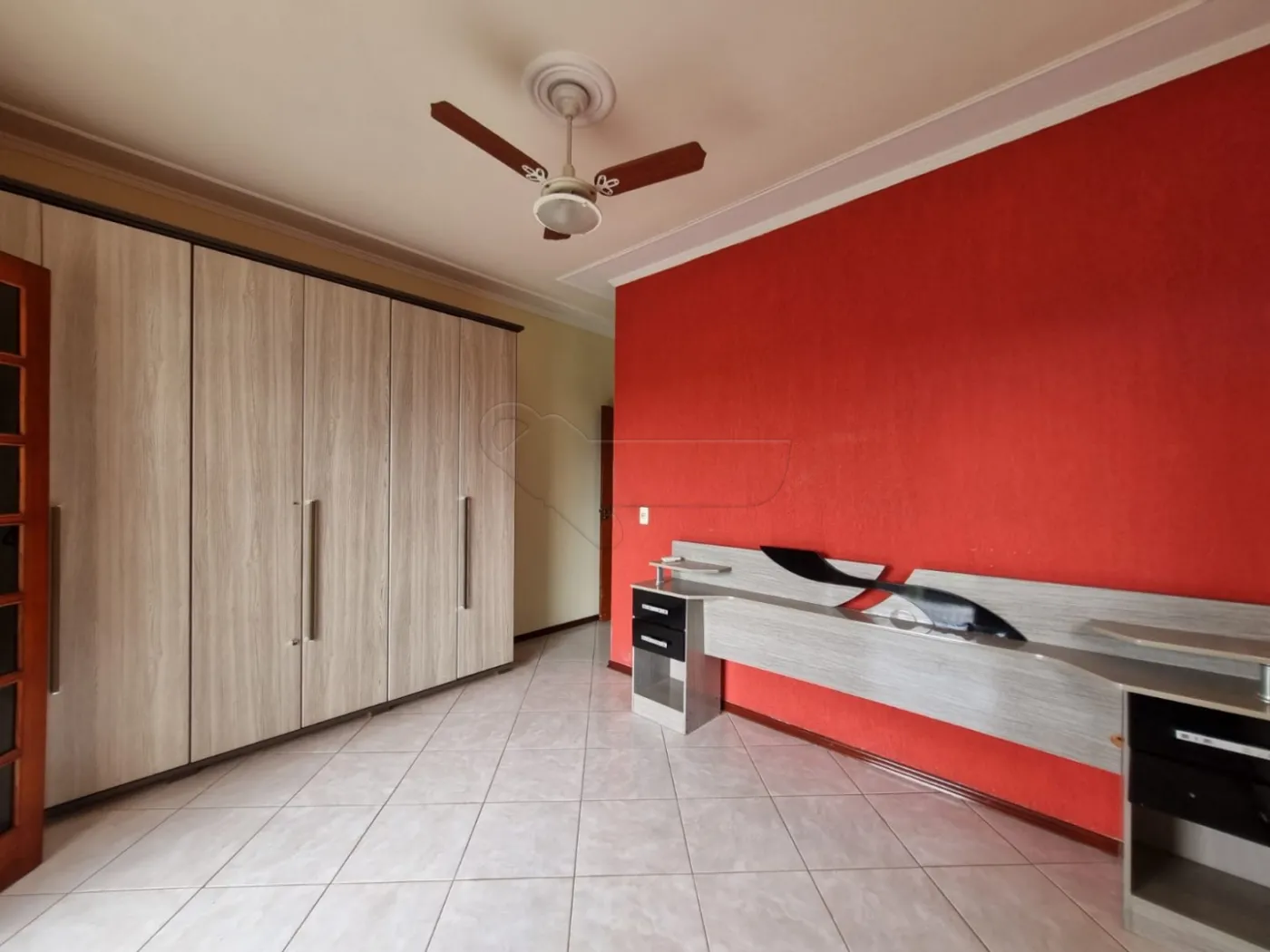 01 quarto com ventilador de teto e armários