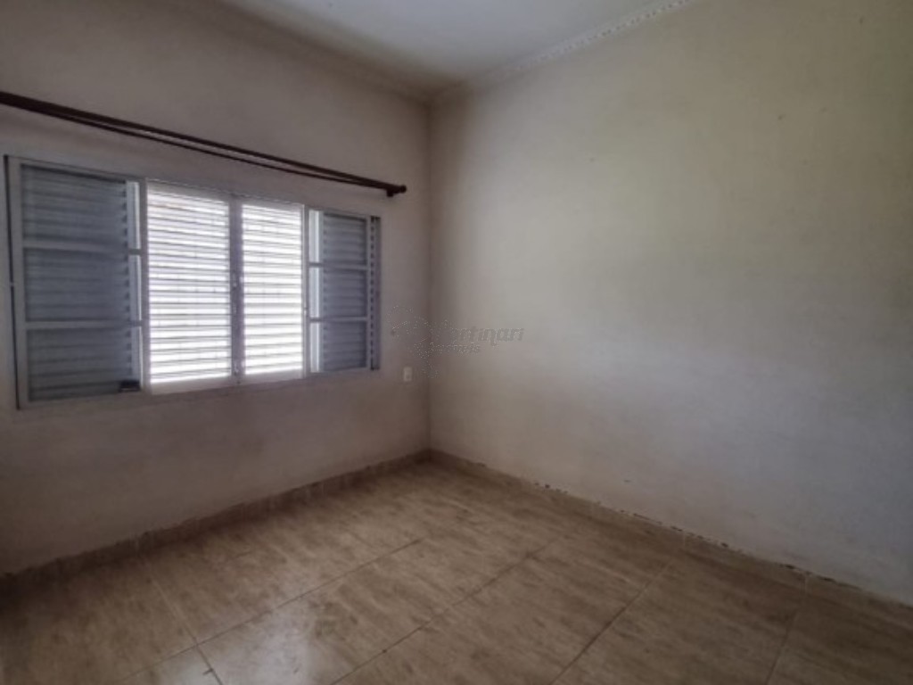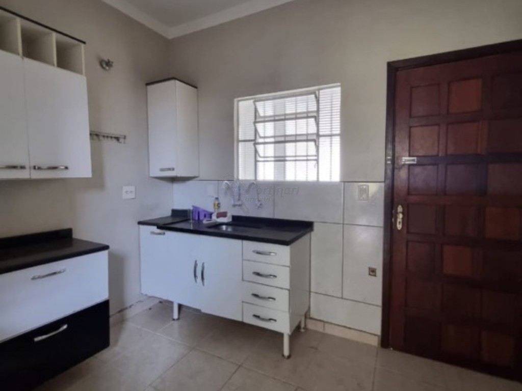 Casa residencial com três dormitórios, sala de estar, sala de jantar, cozinha, dois banheiros, área de serviço, quintal e duas vagas de garagem.